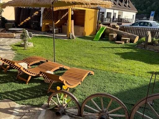 Uvnitř najdete vířivou vanu se světelnou terapií, která zaručuje maximální uvolnění. Venkovní komfortní vířivka se slanou vodou, provozovaná sezónně od března do října, je skvělou volbou pro večerní odpočinek pod širým nebem. Hosté mohou využít finskou saunu s venkovní sprchou, která je ideální pro relaxaci. Příjemné chvíle můžete strávit pod pergolou s grilem. Roubenka pojme až 9 osob, což ji činí ideální volbou pro rodiny a skupiny přátel. Veliký důraz je kladen na celkový komfort vybavenosti nábytku a doplňků ze starých dřevěných trámů, který se prolíná celým interiérem i exteriérem. Naše malebné ubytování se nachází v úchvatném údolí řeky Svratky, obklopené opravdu kouzelnou přírodou. Nově je pro vás připravena projížďka v kočáře s koňským spřežením. Nutno objednat minimálně den dopředu. Informace o aktivitách naleznete v Roubenkové knize.