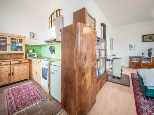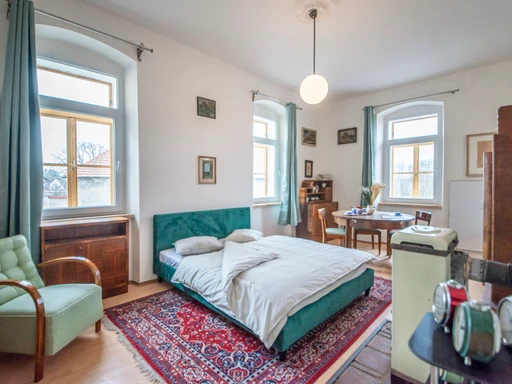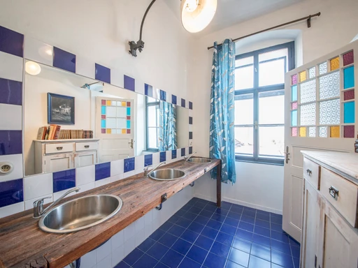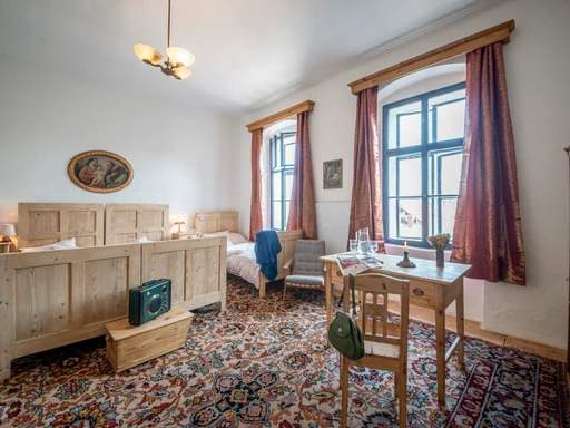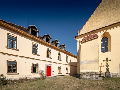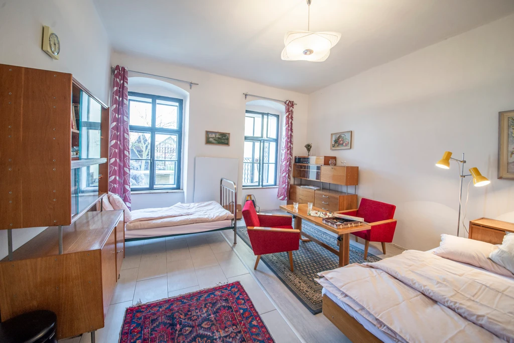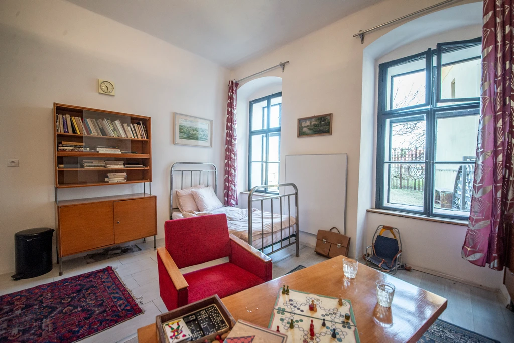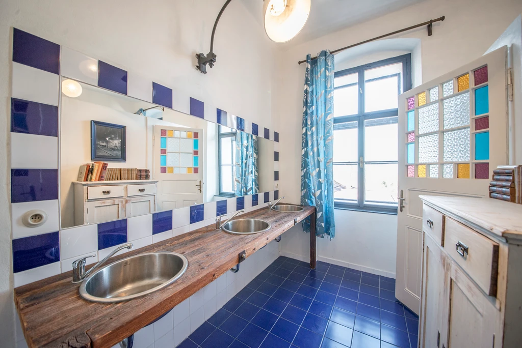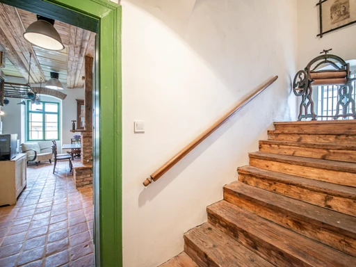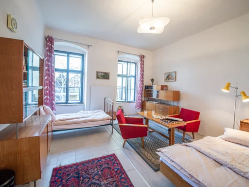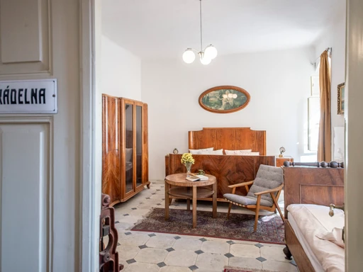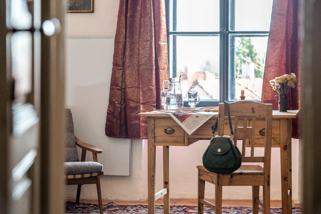 Bývalá vesnická škola se proměnila v místo, kde se učí hlavně odpočívat. Sborovna si zachovala šarm starých časů – vysoké stropy, krásné podlahy, prostorné pokoje z bývalých učeben – ale přidala komfort, díky kterému se sem vejde až 25 lidí a nikomu nic nechybí.