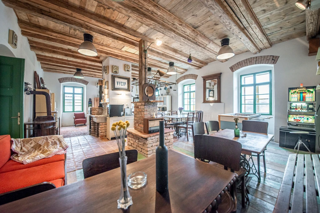 Sborovna je stará škola s novým duchem, kde retro fotbálek střídá filmové večery a vzpomínky na dětství se míchají s čerstvě načepovaným pivem. Staré podlahy, vysoké stropy – a žádné známky!