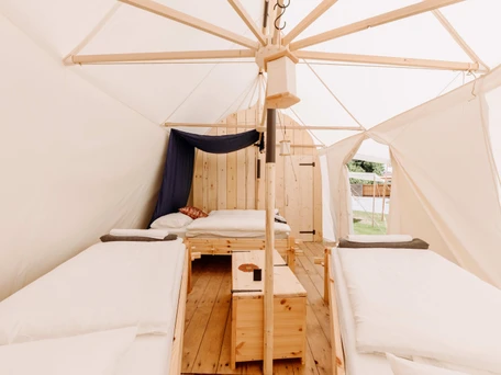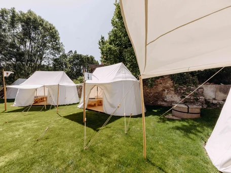Stan Kyj je jedním z osmi stylových stanů v glampingovém campu Malešov u Kutné Hory. Pokud toužíte po originálním zážitku, ale nechcete se vzdát pohodlí, jste tu správně. Čeká na vás manželská postel, dvě oddělená lůžka a soukromá koupelna se sprchou, umyvadlem i toaletou – s teplou vodou samozřejmě. Stan je prostorný, útulný a skvěle zapadá do historické atmosféry místa pod středověkou tvrzí. Ráno můžete posnídat v Krčmě na konci světa, večer posedět v Přátelském pivovaru. A pokud budete mít štěstí, užijete si i tematickou středověkou hostinu. Glampingový stan Kyj vám ukáže, že i dovolená pod plachtou může být luxusní.