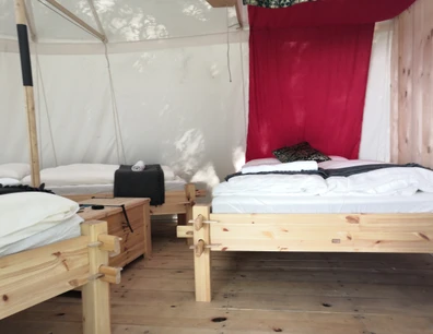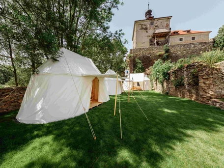 Stan Rolnička je jedním z osmi originálních stanů v campu Malešov, který se nachází na břehu rybníka nedaleko Kutné Hory, přímo pod středověkou tvrzí. Spojuje romantiku přírody s komfortem, který si zasloužíte – čeká vás manželská postel, dvě samostatná lůžka a vlastní koupelna se sprchou, umyvadlem a toaletou. A nebojte, teplá voda teče. V campu se snadno zamilujete do atmosféry – ať už při snídani v Krčmě na konci světa, nebo večer v Přátelském pivovaru. A pokud dorazíte ve správný čas, nenechte si ujít jedinečnou středověkou hostinu. Stan Rolnička je ideální pro ty, kteří chtějí zažít víc než jen běžný nocleh.