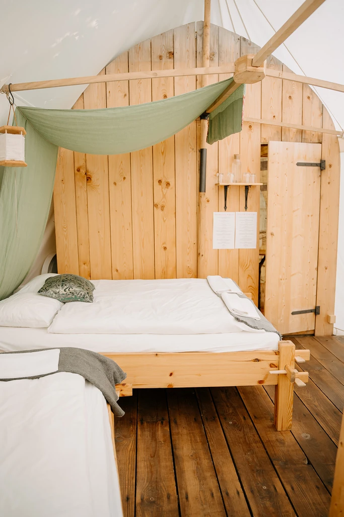 Stan Růže je součástí stylového campu Malešov, který leží v zahradě pod středověkou tvrzí jen kousek od Kutné Hory. Kombinuje romantiku přírody s komfortem, který byste ve stanu nečekali – od manželské postele a dvou samostatných lůžek až po vlastní koupelnu se sprchou, umyvadlem a toaletou. Nechybí ani teplá voda! Po příjezdu určitě zamiřte do místního Přátelského pivovaru na něco osvěžujícího nebo si dopřejte snídani v atmosférické Krčmě na konci světa. Stan Růže je skvělou volbou pro páry i rodiny, které chtějí zažít glamping s nádechem historie a pohodlí.