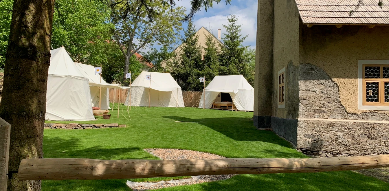 Stan Šípy v campu Malešov vás překvapí tím, jak pohodlné a stylové může být spaní v přírodě. Komfortní vybavení, soukromá koupelna a atmosféra středověkého areálu vám připraví zážitek, na který jen tak nezapomenete.
