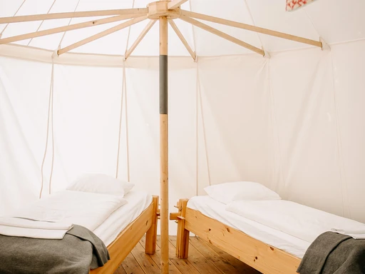 Stan Štít, součást unikátního campu Malešov nedaleko Kutné Hory, nabízí dokonalou kombinaci přírody a pohodlí. Ubytujete se v plně vybaveném stanu až pro čtyři osoby – nechybí manželská postel, dvě samostatná lůžka ani soukromá koupelna se sprchou, umyvadlem a toaletou. Teplá voda a příjemný interiér vám zpříjemní každý okamžik. Glamping u rybníka pod středověkou tvrzí si zamilujete – ať už při snídani v Krčmě na konci světa nebo u sklenice piva z Přátelského pivovaru. A pokud sem zavítáte ve správný čas, zažijete i nezapomenutelnou středověkou hostinu. Stan Štít je symbolem klidu, komfortu i nových zážitků.
