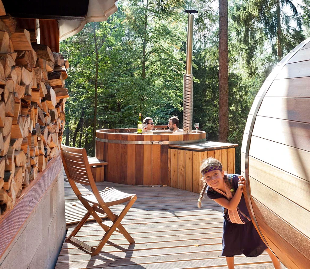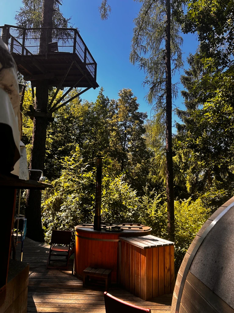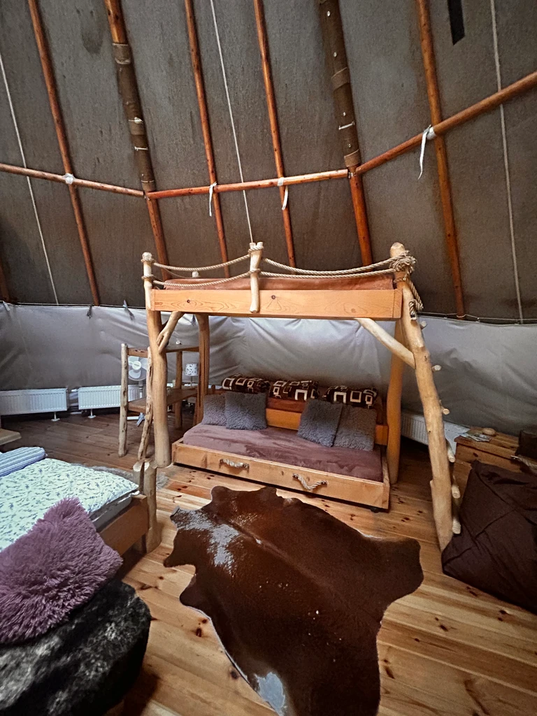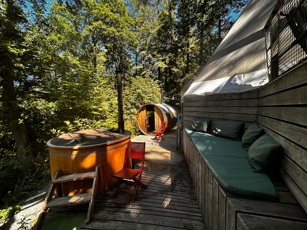 Ubytování v Teepee&Spa v Pyskočelích vás zavede do netradičního prostoru, který spojuje indiánský styl s pohodlím a moderním vybavením. Teepee je dost prostorné pro pět hostů a nabídne vše, co k odpočinku potřebujete – pohodlné postele, sprchu, toaletu, kuchyňku i prostor na deskové hry. V létě i zimě tu najdete klid i zážitek, ať už si ho dopřejete uprostřed lesa nebo na vyhlídkové terase. Vrcholem pobytu jsou venkovní lázně – koupací sud, sauna a venkovní sprcha, které přenesou relax na úplně jinou úroveň. Ideální místo pro ty, kdo chtějí vypadnout z každodenního shonu a na chvíli zpomalit.