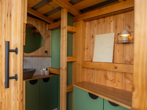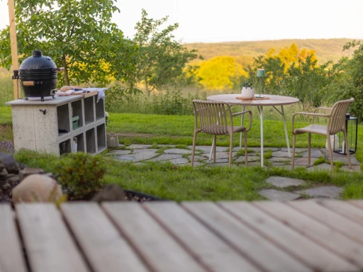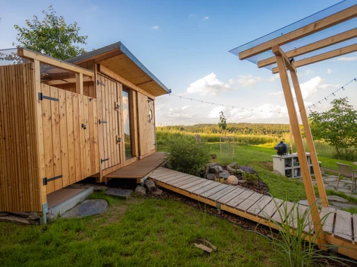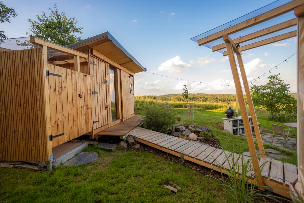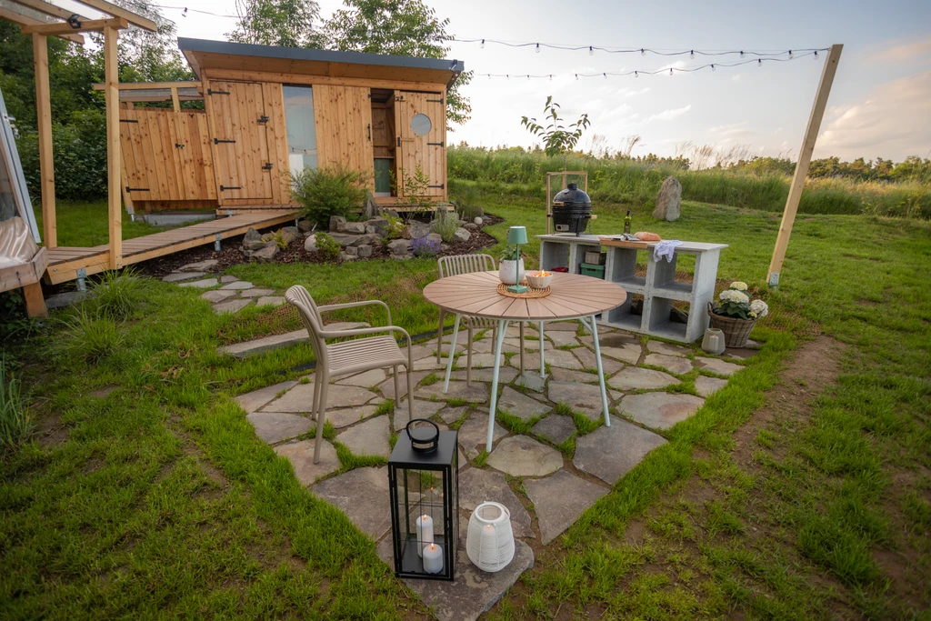 Ulita je malý ráj pro dva. Čeká vás dubová postel jako stvořená pro sladké sny, kuchyňka se vším potřebným a venkovní gril pro večery plné vůní a chutí. A to nejlepší? Venkovní koupelna s průhlednou střechou – sprcha pod hvězdami má úplně jinou dimenzi. Intimní, nezapomenutelné, prostě wow.