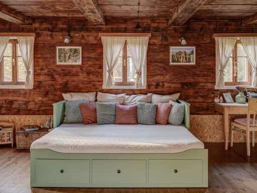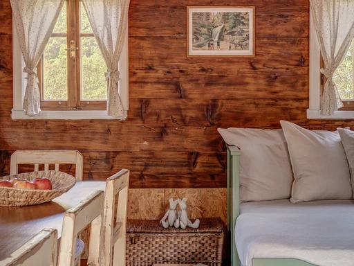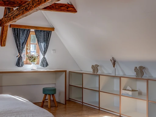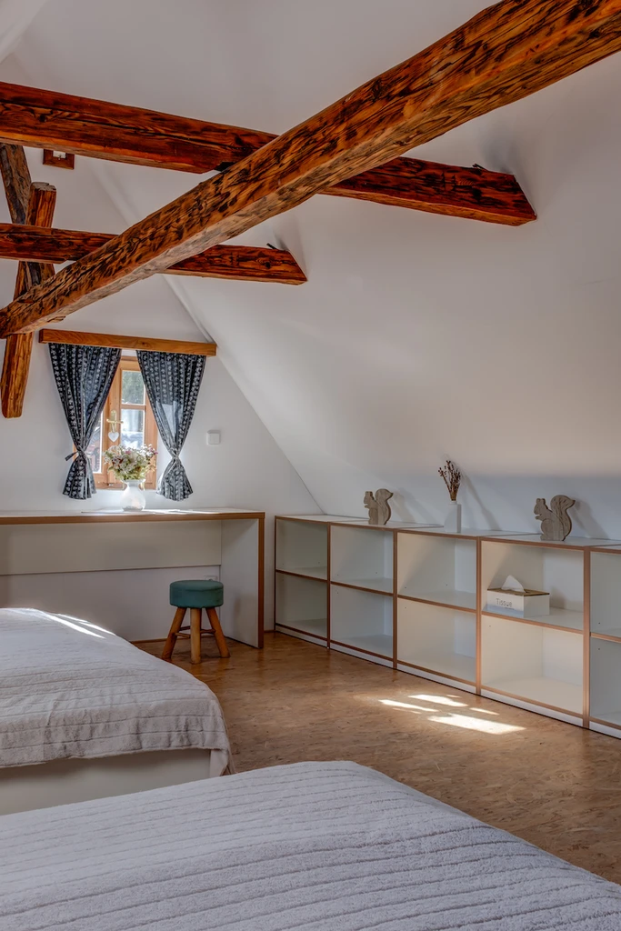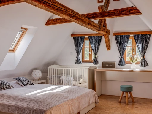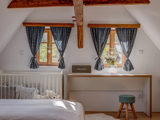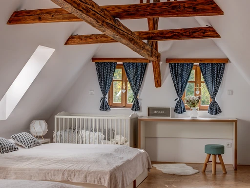 Na okraji obce Chřibská najdete citlivě zrekonstruovanou roubenku plnou klidu a domácí pohody. Vejminek je ideální volbou pro rodiny i skupinu přátel, ale klidně tu můžete pobýt i ve dvou. Ubytuje až 9 dospělých a dvě miminka – postýlky jsou samozřejmostí. Hlavní společenský prostor tvoří prostorná světnice, dvě ložnice a tři koupelny. Velkým bonusem je nově upravená zahrada s několika odpočinkovými zákoutími. Mladí majitelé vdechli chaloupce nový život s láskou a péčí a atmosféra radosti a klidu je tu znát na každém kroku. Ať už si přijedete odpočinout, pracovat na dálku, nebo trávit čas s blízkými, tady vám bude hezky.