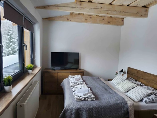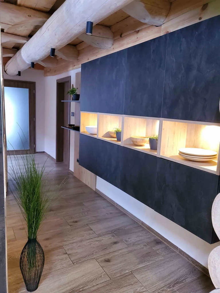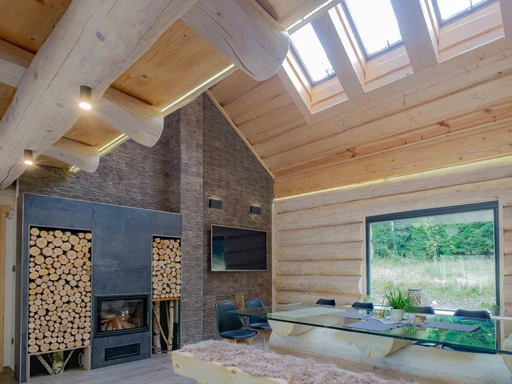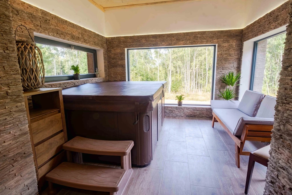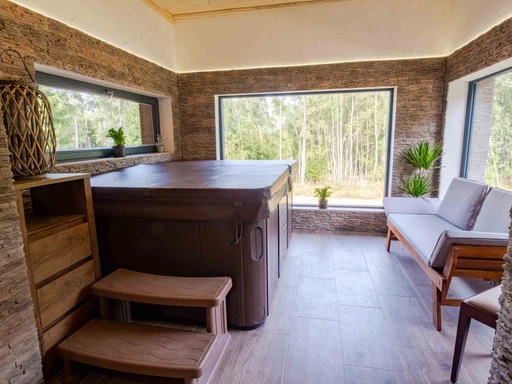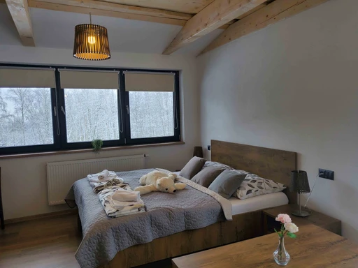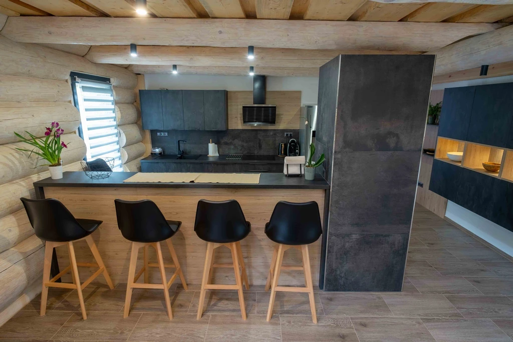 Na okraji vesničky Kuří v Novohradských horách najdete nový srub KuŘíp, který okouzlí každého milovníka dřeva a designu. Vysoký strop hlavní místnosti dodává prostoru vzdušnost, kterou ještě umocňuje velké prosklení a výhled do zahrady. Společné večery si užijete u krbu nebo při sledování domácího kina. Nechybí ani wellness zóna s infrasaunou, vířivkou a lehátky s výhledem na oheň. Téměř každá ložnice má vlastní koupelnu, což ocení jak parta přátel, tak rodiny s dětmi. Apartmán v přízemí vás navíc odmění přímým vstupem na terasu. KuŘíp je ideálním výchozím bodem pro objevování Jižních Čech – na dosah máte Český Krumlov i Třeboňsko.