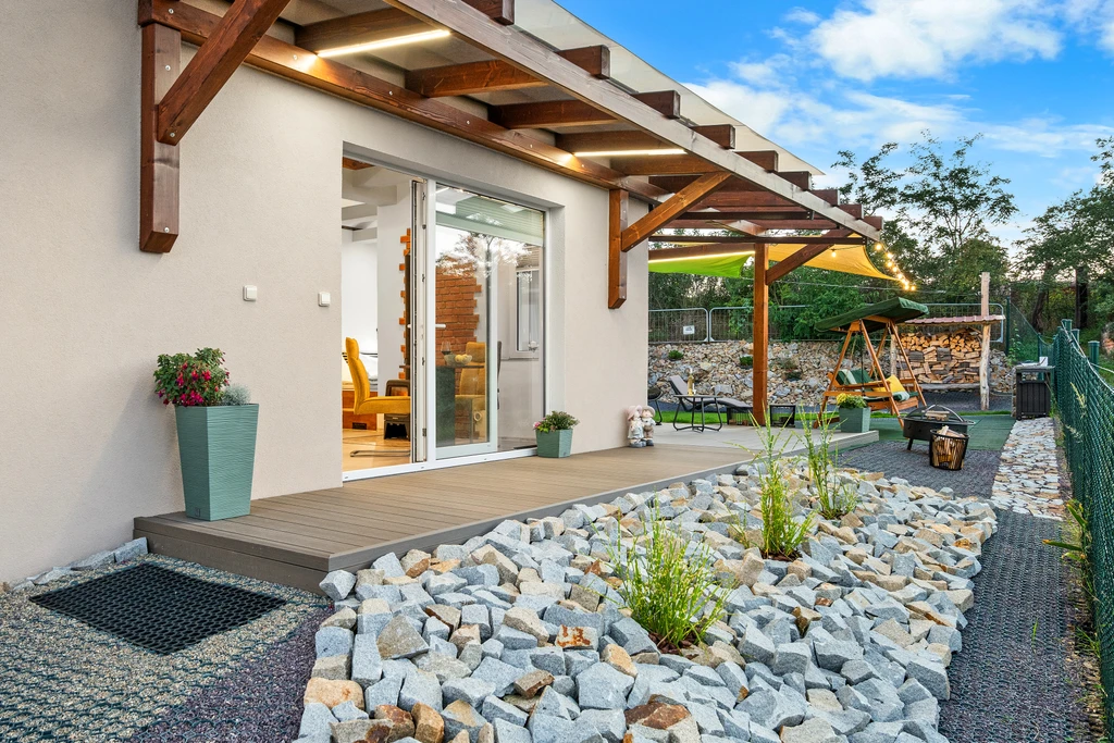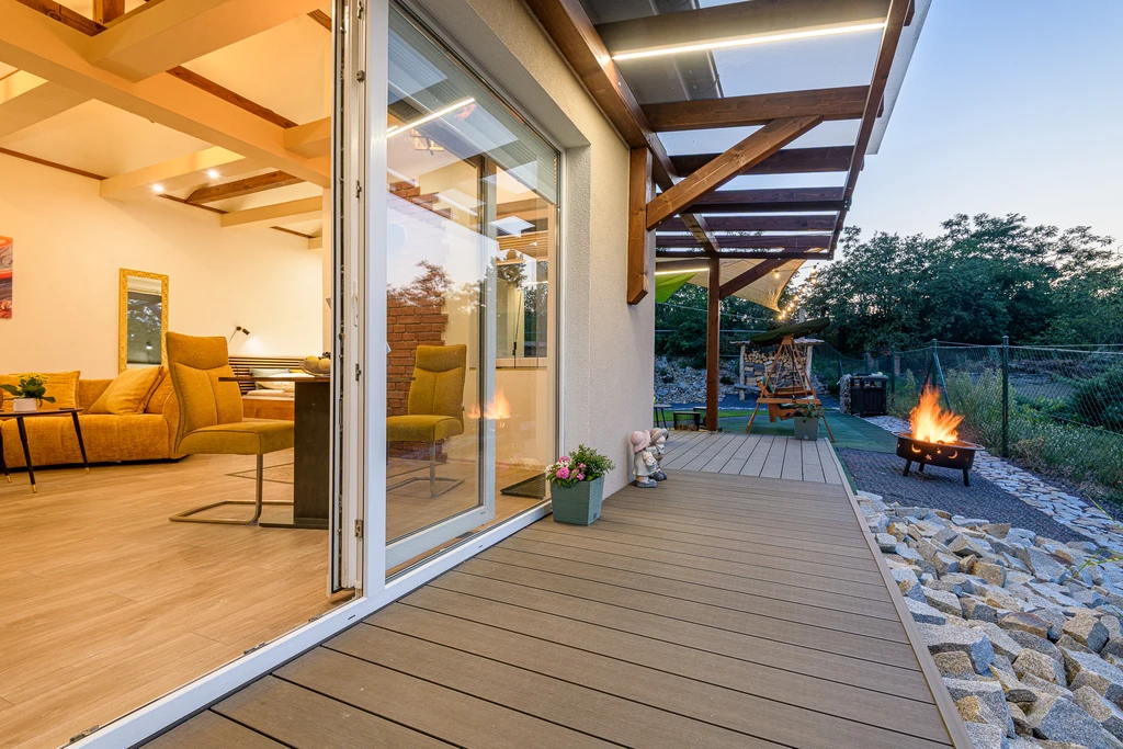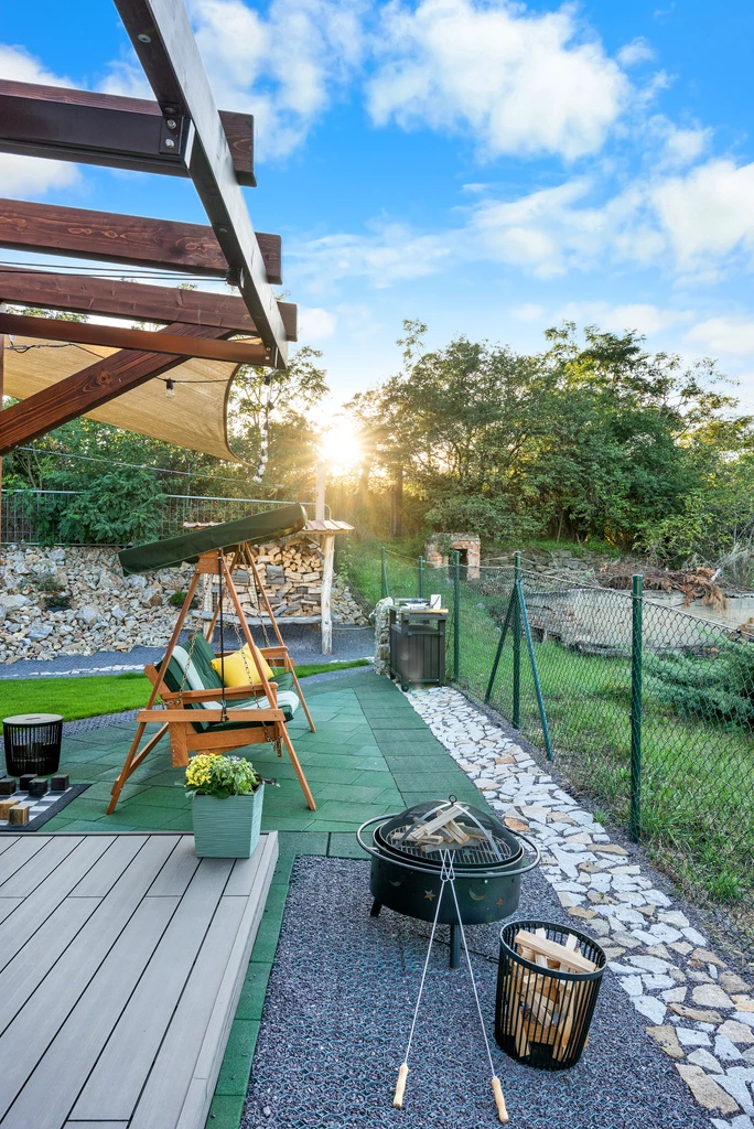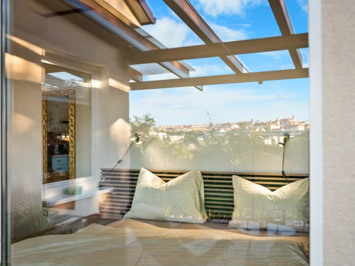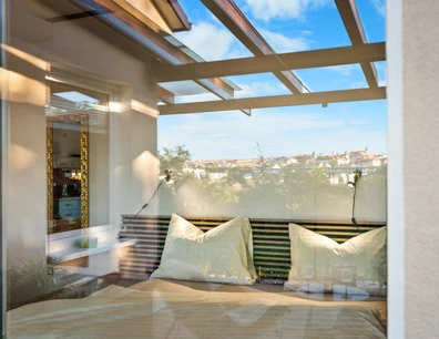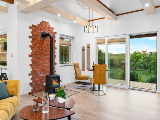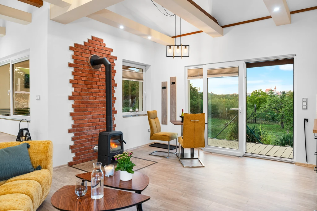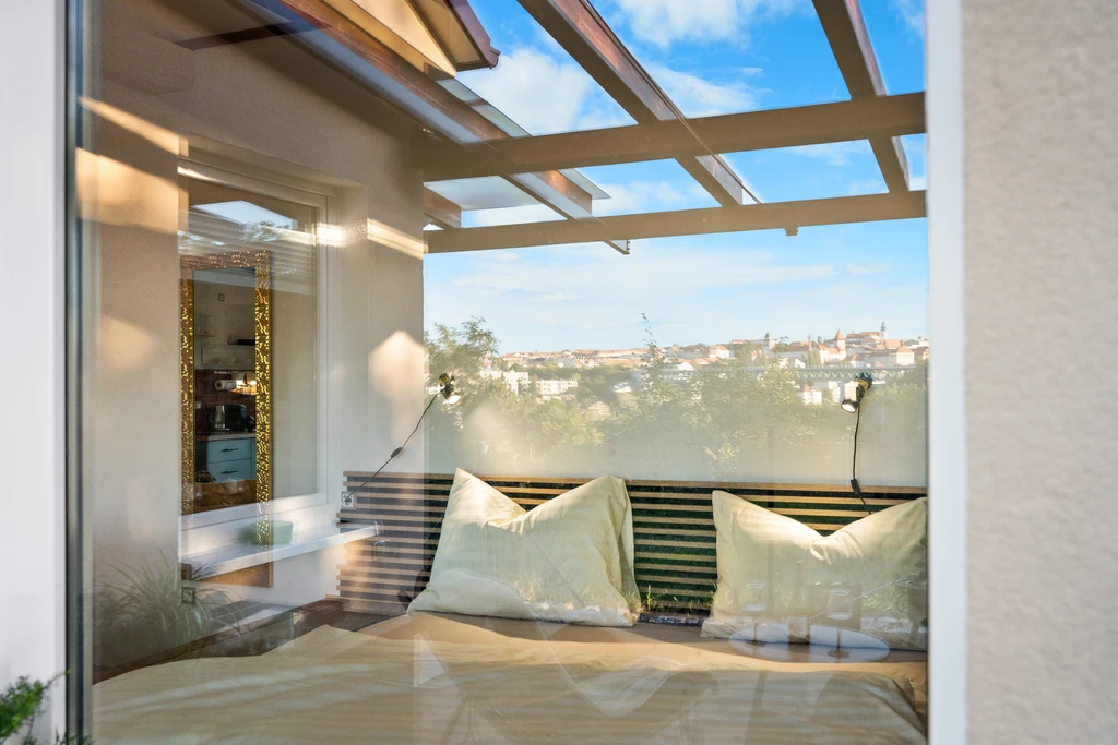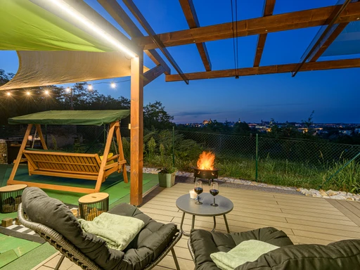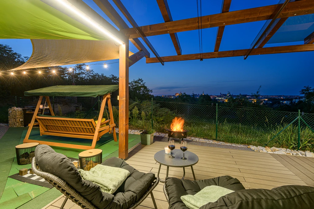 Romantika ve Vilce nad Znojmem pro 2 osoby s posezením na terase a výhledem na historické město Znojmo.