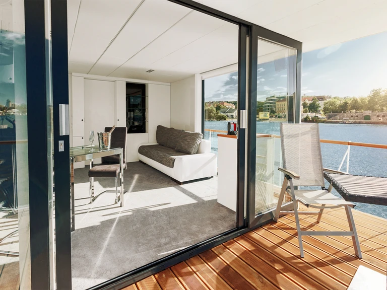 Luxusní houseboat poblíž Vyšehradu vám nabídne zcela nový pohled na Prahu. Ráno snídaně na řece, večer film s výhledem na Vltavu. Nechte se unést klidem hladiny – a třeba i kapitánem po pražských památkách.