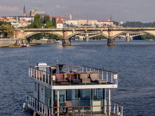 Přespání na Vltavě? V luxusním houseboatu kotvícím u Vyšehradu se sen stává realitou. Kompaktní, ale promyšlený prostor nabízí samostatnou ložnici s manželskou postelí, plně vybavenou kuchyňku i obývací část s gaučem a širokoúhlou LED TV. Nechybí ani špičkový audio systém Harman Kardon pro vaši oblíbenou hudbu. Terasa s výhledem na řeku zve ke snídani pod širým nebem a klid vodní hladiny vás přenese mimo ruch města – i když jste stále v jeho srdci. Pro nezapomenutelný zážitek si domluvte projížďku po Vltavě s kapitánem a objevte Karlův most nebo Pražský hrad z perspektivy, jakou zažije jen málokdo.