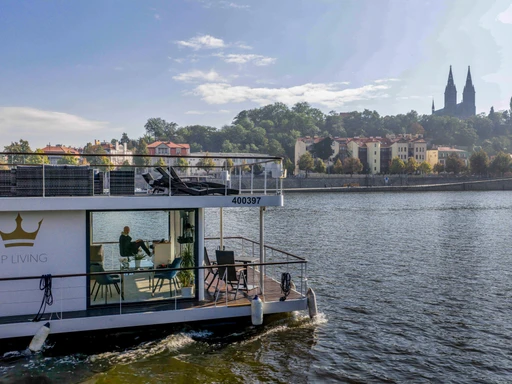 Luxusní houseboat poblíž Vyšehradu vám nabídne zcela nový pohled na Prahu. Ráno snídaně na řece, večer film s výhledem na Vltavu. Nechte se unést klidem hladiny – a třeba i kapitánem po pražských památkách.