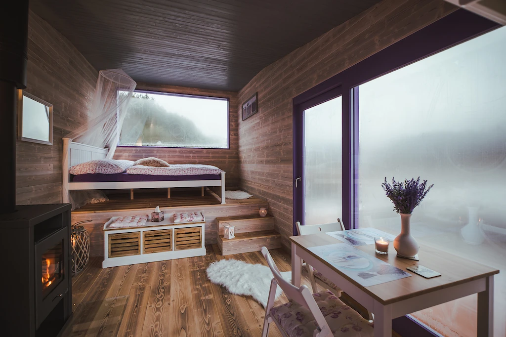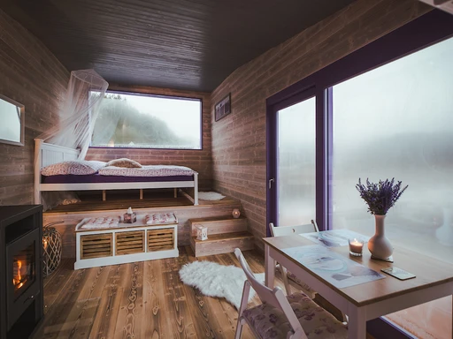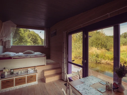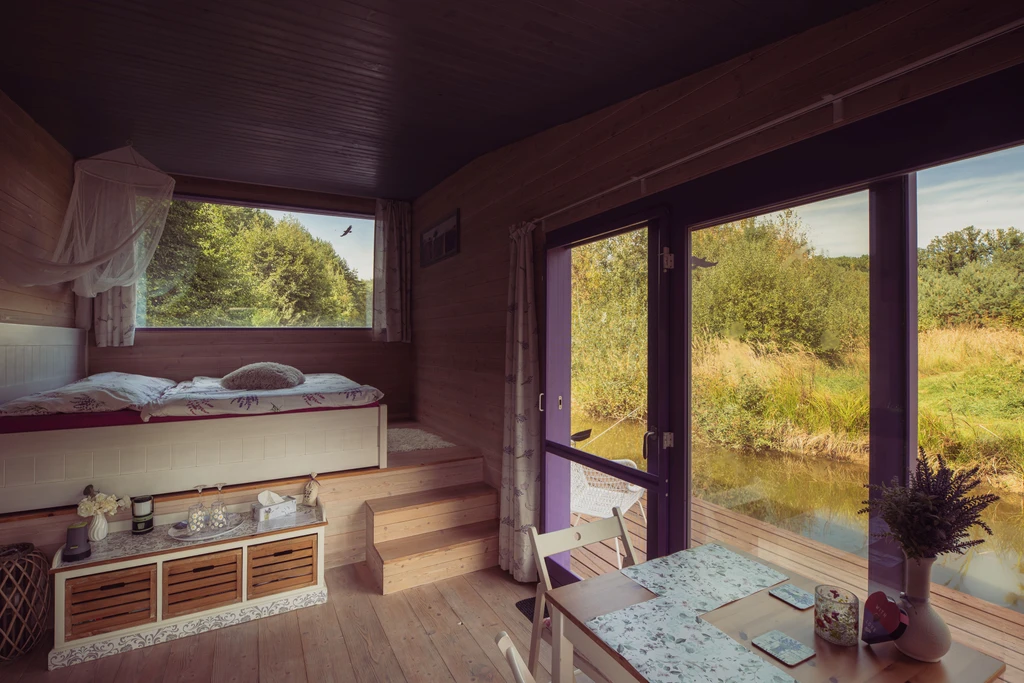 Levandulový domek Provence je útočiště pro ty, kdo se chtějí na chvíli ztratit – ne z mapy, ale z každodenního shonu. Stojí na klidné vodní hladině, obklopený zelení a tichem, které neruší nic, kromě občasného šplouchnutí ryby nebo ševelení větví. Všude kolem prostor, kde nic nemusíte a všechno se může.