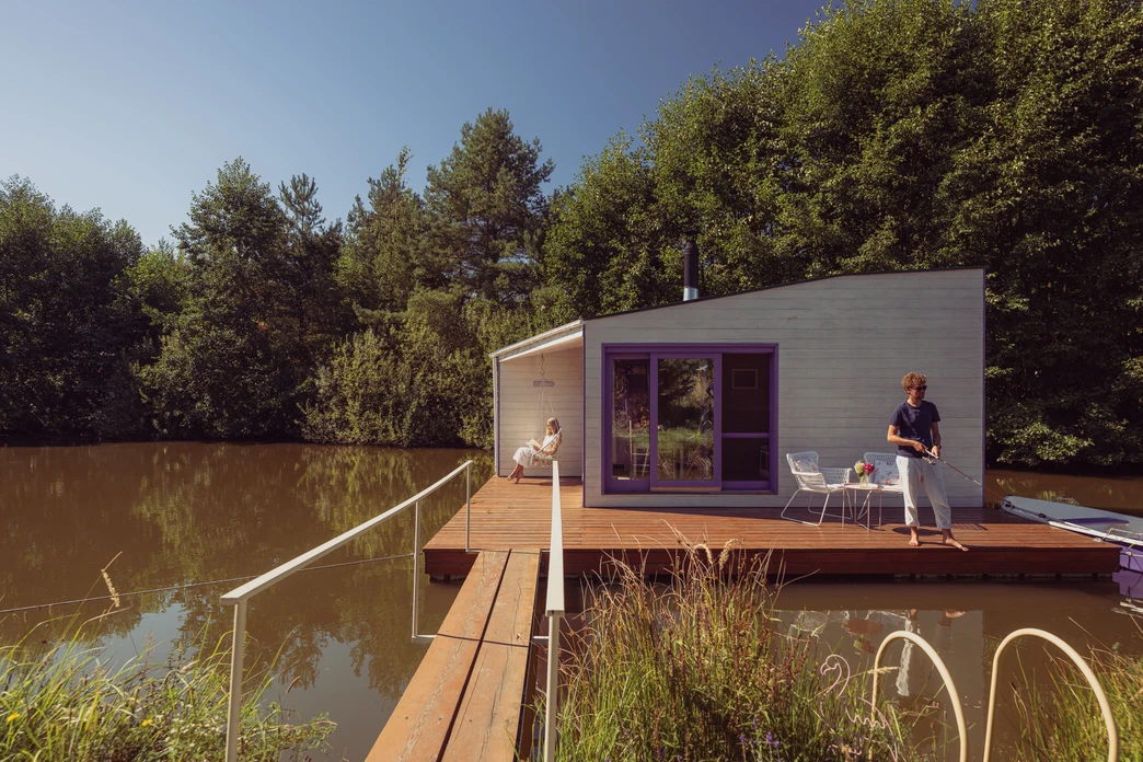 Domek na hladině vody je jako pohlednice, do které můžete vlézt. Dřevo voní, voda odráží nebe a houpací síť vás obejme. Ideální místo, kde si člověk vzpomene, jak se pomalu zhluboka nadechnout.