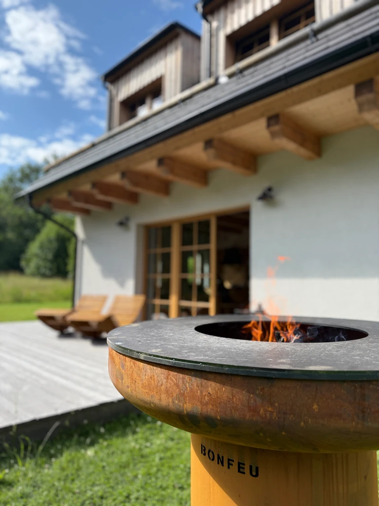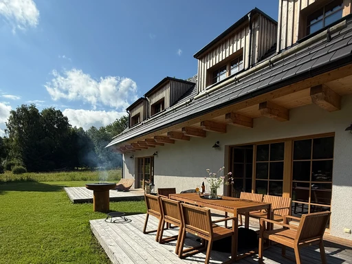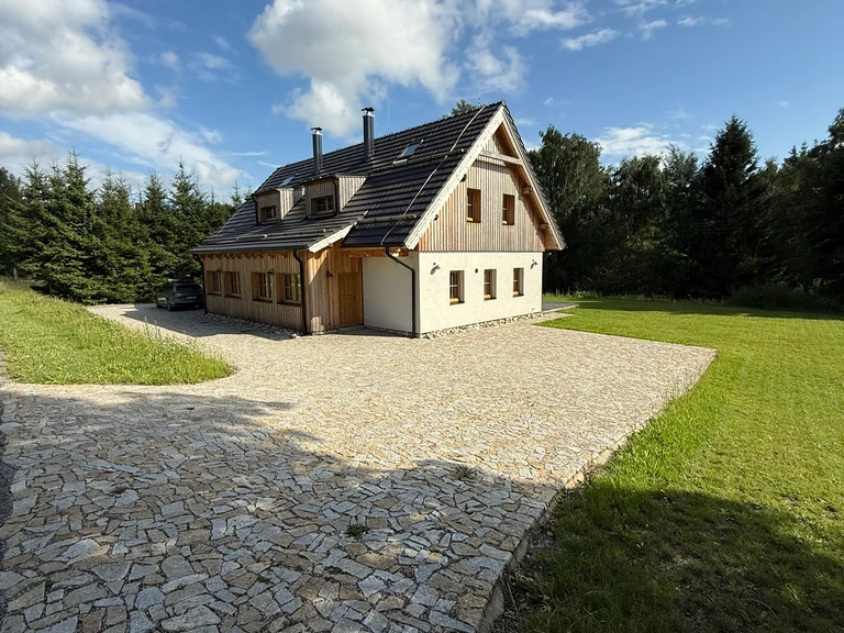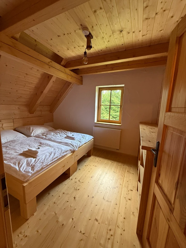 Místo, kde se snoubí naprostý klid, čistá příroda lipenské přehrady a moderní pohodlí. Chalupa je rozdělena na dva samostatné designové apartmány, každý s vlastní plně vybavenou kuchyní, dvěma koupelnami, třemi ložnicemi, útulným podkrovím a přímým vstupem na terasu se zahradou. Každý apartmán má navíc privátní saunu, stylový interiér s prvky dřeva a jeden z nich krbová kamna, druhý pak relaxační čtecí kout s TV.