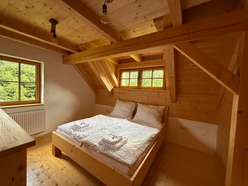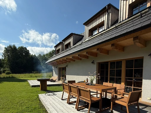 Místo, kde se snoubí naprostý klid, čistá příroda a moderní pohodlí. Tento designový apartmán je součástí luxusní chalupy rozdělené na dvě samostatné jednotky a nabízí dostatek soukromí i komfortu.