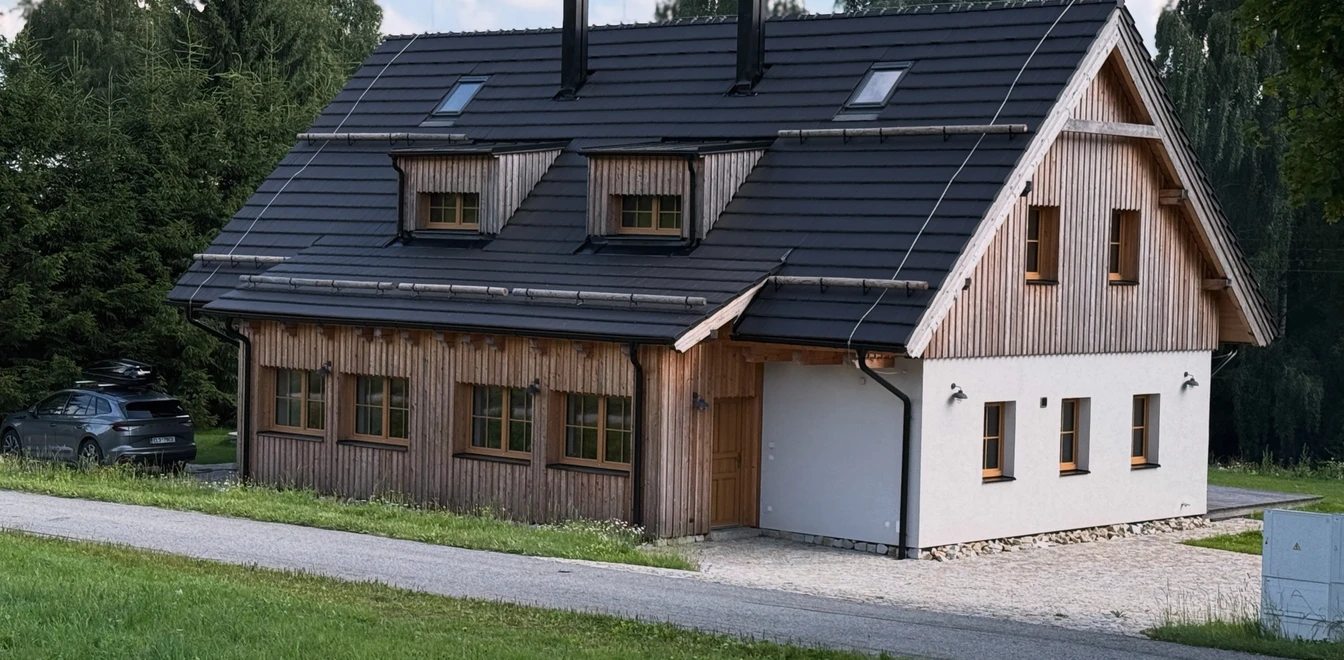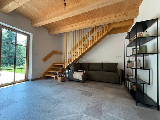 Místo, kde se snoubí naprostý klid, čistá příroda a moderní pohodlí. Tento designový apartmán je součástí luxusní chalupy rozdělené na dvě samostatné jednotky a nabízí dostatek soukromí i komfortu.
