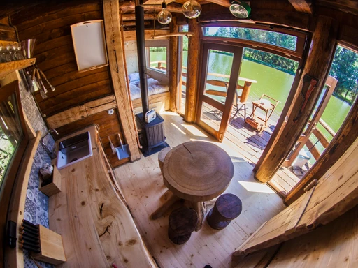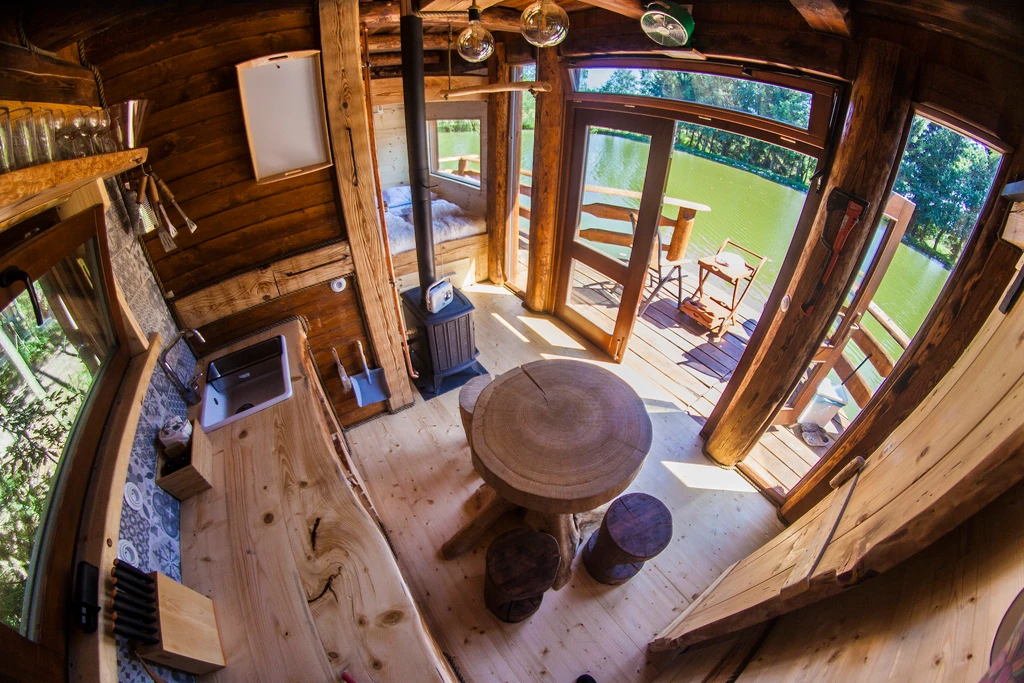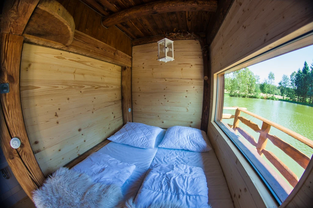 Wellness Fshing je místo, kde se klid nepředstírá – on tu prostě je. Srub pro čtyři osoby stojí na hladině rybníka a místo Wi-Fi má výhledy, co vyladí hlavu i tělo. Ráno rybaříte přímo z verandy, v poledne ulovenou rybu hodíte na venkovní gril a večer... večer vás čeká koupací sud, sauna a možná i pár hvězdných přání.
