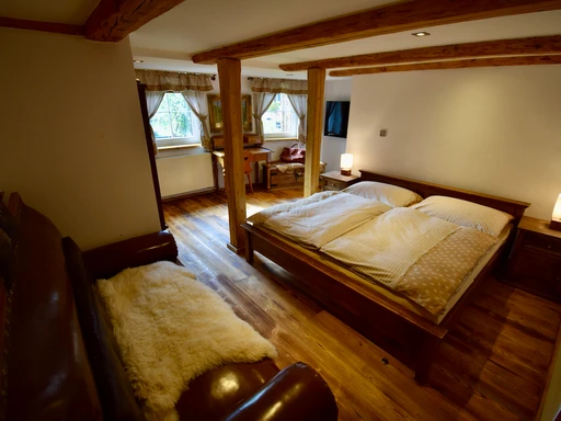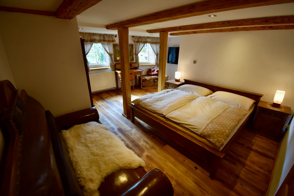 Více než 200 let stará roubenka v malebné vesničce Křižánky vás vezme zpět v čase, ale s pohodlím dneška. Uvnitř najdete nádhernou pec, na které můžete sušit houby a parádně lenošit, tři ložnice pro až 13 hostů, dvě koupelny, plně vybavenou kuchyni se sporákem, troubou, myčkou i kávovarem. Nechybí ručníky, povlečení, dřevo do kamen ani závěrečný úklid – o nic se starat nemusíte.